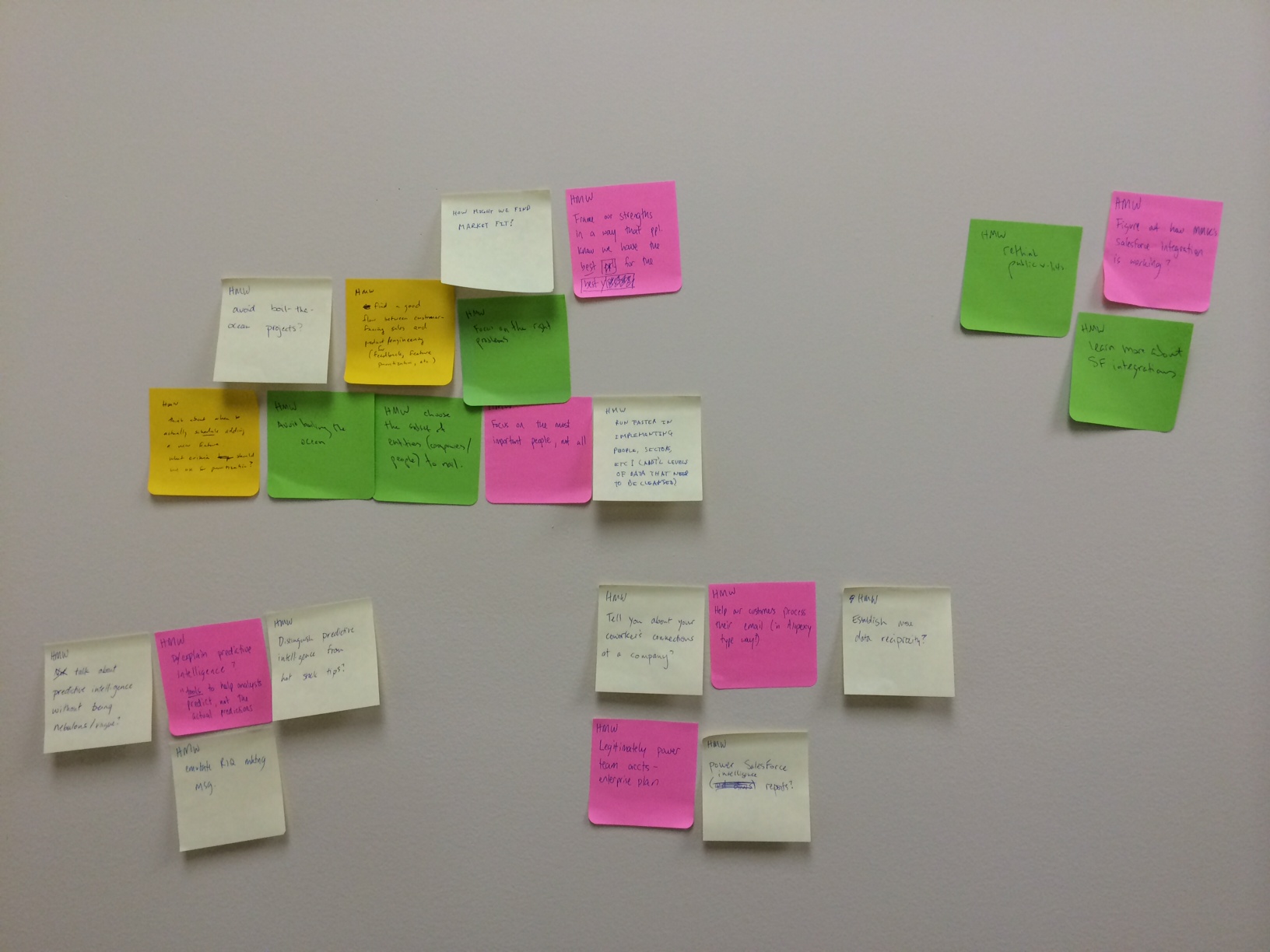 Les 25 participants sont répartis au début de la journée en 5 groupes de 5 personnes, pour les faire travailler ensemble de manière transversale dès le début.
